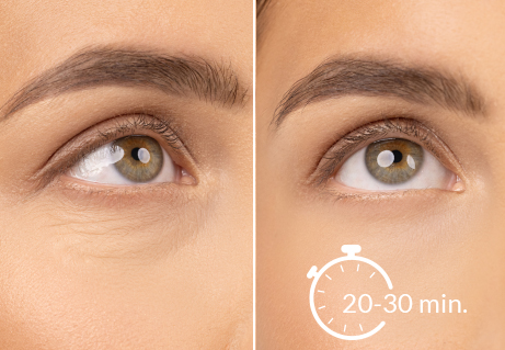 Gracias a su fórmula con colágeno, retinol, ceramidas y vitamina C, este parche brinda amplios beneficios antienvejecimiento y nutritivos. Desde el primer uso, la piel adquiere una hidratación profunda, se tersa y tonifica. Con una aplicación regular, se reducen las ojeras y la hinchazón, se mejora la firmeza y se ilumina el contorno de los ojos, dando así una imagen visiblemente más joven y descansada, equivalente a los resultados de la mesoterapia o la carboxiterapia.